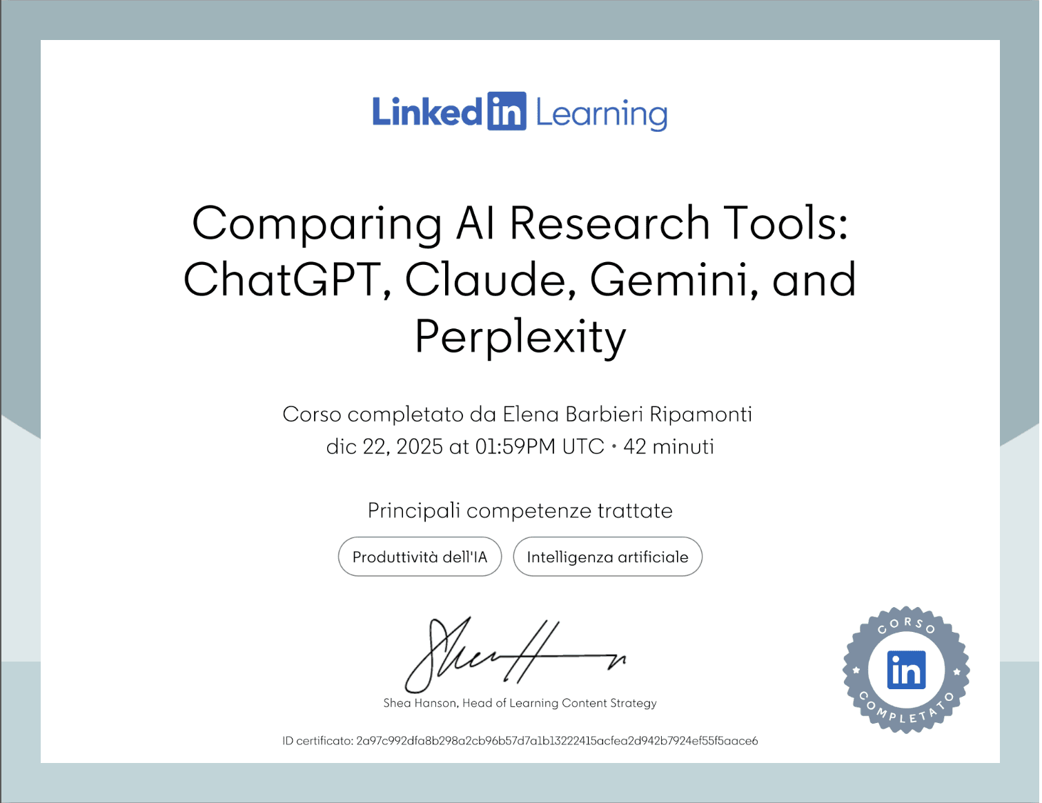 Nel mio lavoro avvicino persone e team all’Intelligenza Artificiale per utilizzarla a supporto del loro potenziale umano.Non parto dagli strumenti, ma dalle domande, dalle esigenze e dalle dinamiche reali del lavoro quotidiano.